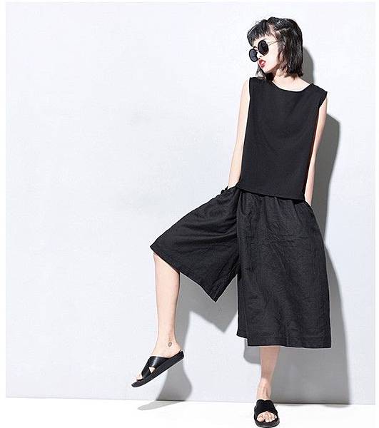 MyOrange.時尚柳丁【FSQ1786831】前衛風格~不對稱闊腿亞麻混紡寬褲裙