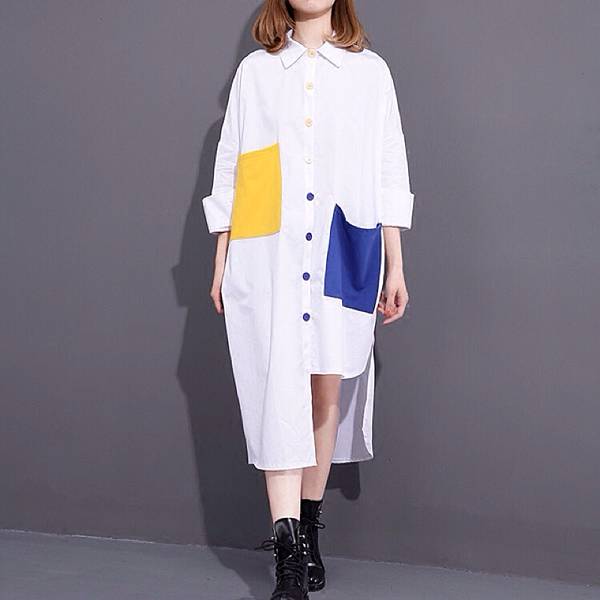 Y2™ 不對稱剪裁彩色口袋襯衫長版